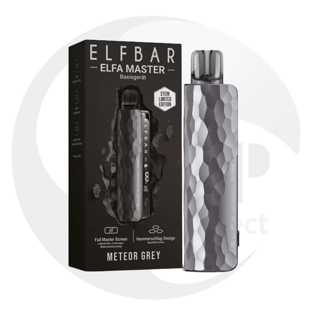ELF BAR ELFA Master (Limited Edition): 9–18 W regulierbar, 850 mAh Akku, 2 ml Pods, USB-C. Gehämmert in Obsidian Black oder Meteorite Grey mit Seriennummer. Intensiver Geschmack & dichte Wolken dank kompatibler Bad Candy-, 187 Strassenbande- & Co-Pods.