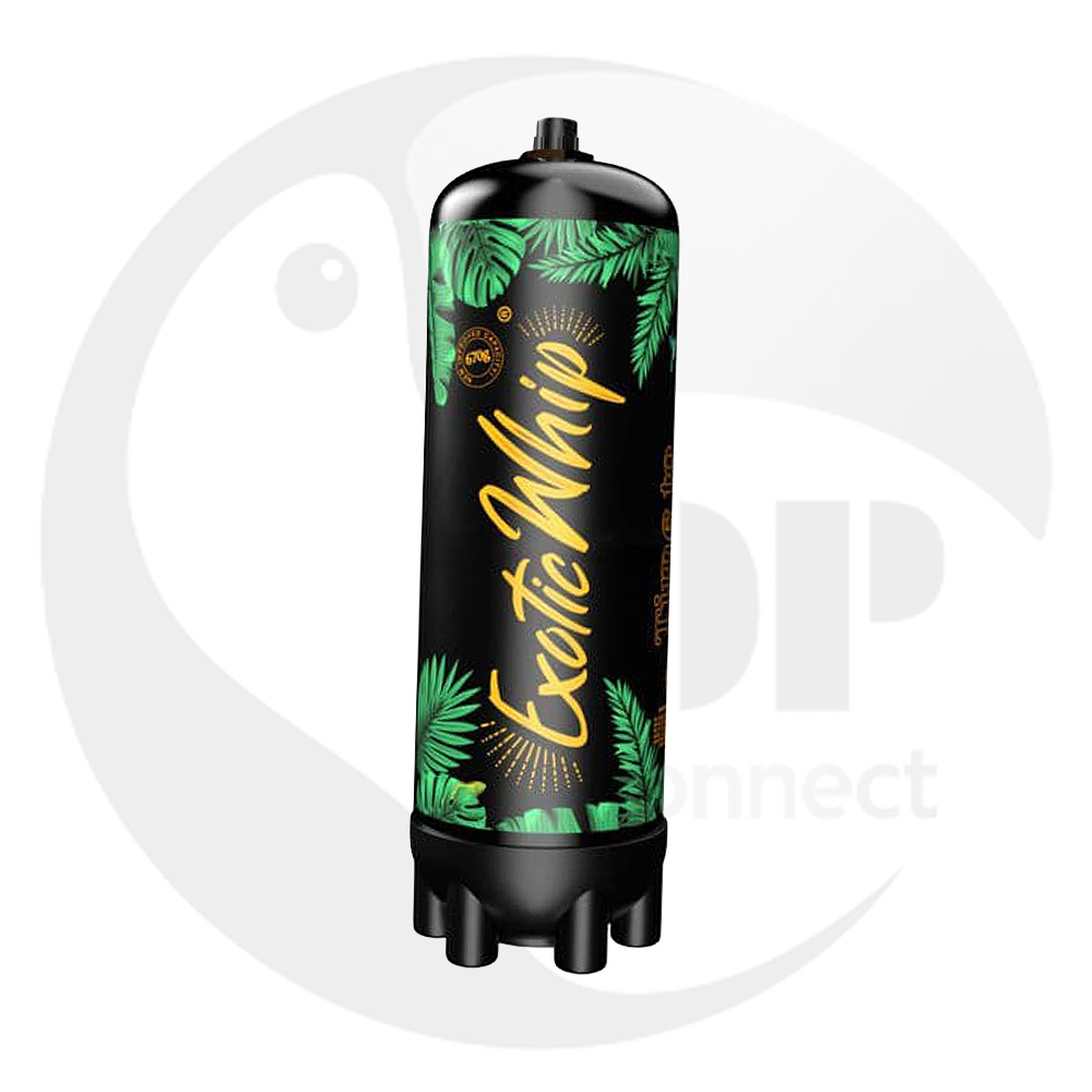 Exotic Whip: Kompaktes N₂O-Sahnekapsel-System für luftige, cremige Schlagsahne auf Knopfdruck. Ein-Klick-Befüllung, nahtlose Zylinder (640–2000 g N₂O), EU-zertifiziertes hochreines Distickstoffmonoxid, 100 % recycelbar.