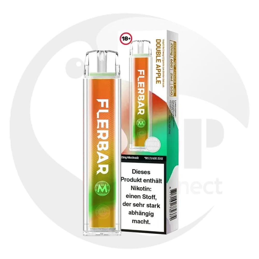 FLERBAR: Wahl aus über 20 Aromen von Blueberry bis Menthol, Dual Mesh Coil für intensiven Geschmack, bis zu 600 Züge, 2 ml Pod, 500–650 mAh Akku, 20 mg/ml Nikotinsalz, Zugautomatik und USB-C Quick Charge.