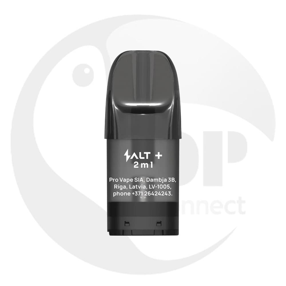 SALT Plus Leerpod: Nachfüllbarer 2 ml Pod mit 1,0–1,2 Ω Mesh-Coil für feinen Dampf. Bis zu 600 Züge, Side-Fill-System, variabler Nikotingehalt, Zug-Aktivierung und 3-Zug Kindersicherung. Kompatibel mit SALT Plus Akkuträgern.
